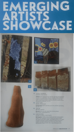 On a completely separate note I was delighted that one of my pieces of Kombucha work Salt Sequence 1 was chosen as 1 of 15 works by ‘Emerging Artists’ in the Fiber Art Now magazine Vol 8 Issue 3 Spring 2019.