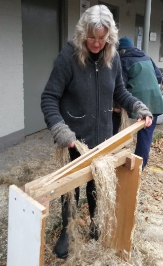 The Coronavirus outbreak has significantly impacted on the The Flax Project but things are still happening in the background albeit at a much slower pace. Over the winter months I managed to process the flax I’d grown. In my previous posting I had ‘stooked’ my retted flax into bundles to dry out before processing it and what followed was a fabulous vocabulary of different stages namely Breaking, Scutching, and Hackling.