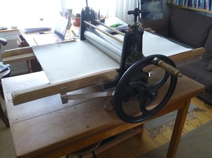 One of the many positives to come out of lockdown is that my old fashioned mangle in my studio has been converted to a printing press, courtesy of my wonderful husband and I love it! Now I have no excuse not to be creative!