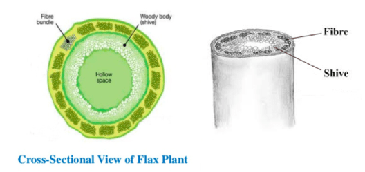 The fibres you need for making linen are located between the skin and the inner woody core (i.e. shive) of the flax stems.