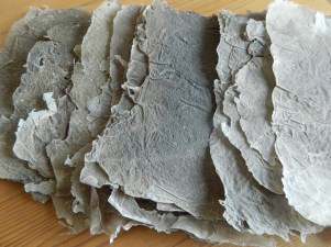 When the paper I created from the Hollander Beater dried, it shrank and funnily resembled a poppadum. Even when I ironed it flat, it still had a crispiness which I wasn’t that keen on.