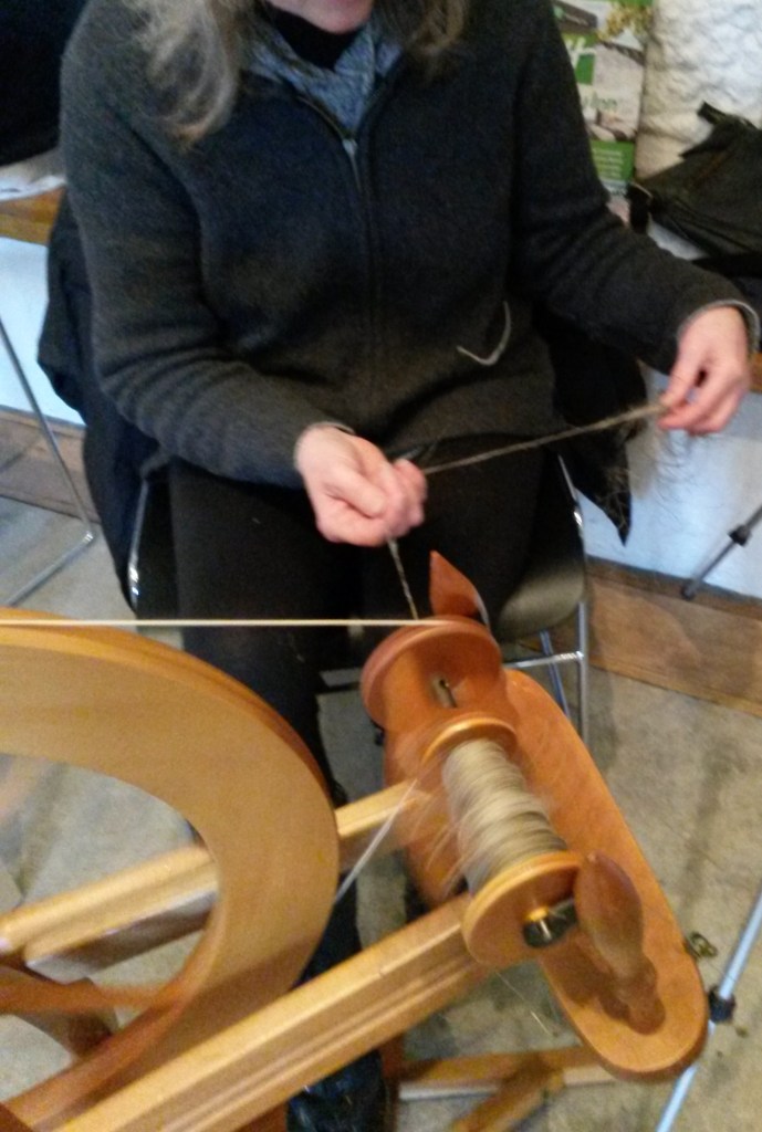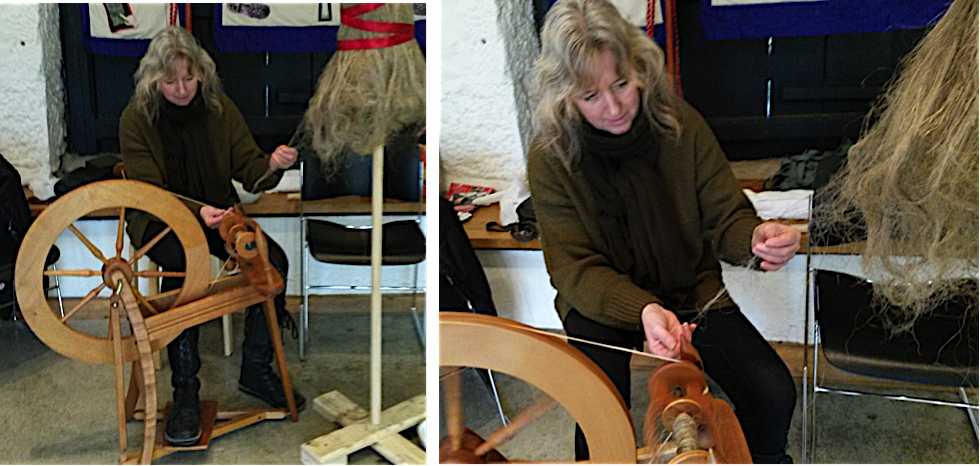 I quickly moved onto the spinning wheel courtesy of Stella Schofield Adams and again a steep learning curve. Spinning is when the fibres are drawn out and twisted together to form yarn and in this case linen yarn.