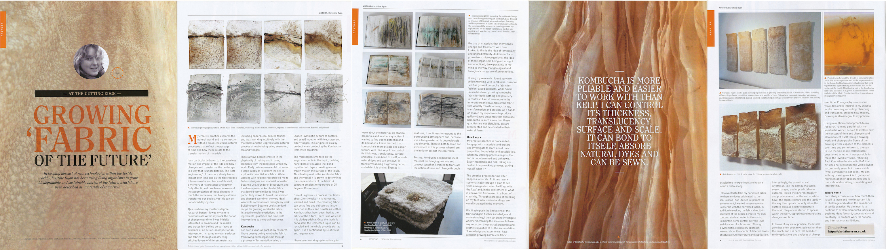 March 2017 Growing ‘Fabric of the Future’ . ‘At the Cutting Edge’ featured article in Textile Fibre Forum magazine # 125